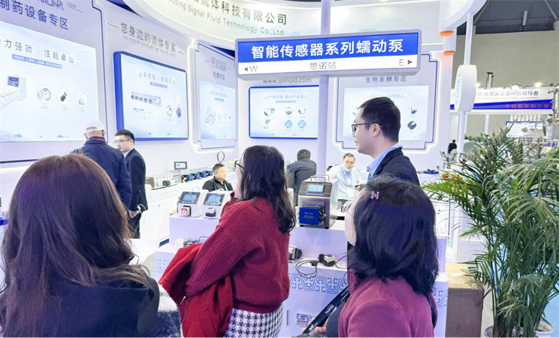 在此次 API China交易會上,思諾流體攜智能傳感器系列蠕動泵產品亮相展區,展位前人流如織,吸引了眾多業內人士駐足咨詢。公司銷售團隊熱情接待每一位來訪者,與客戶深入溝通交流,詳細介紹產品的特點、展示傳輸過程及市場應用前景。通過交流探討,不僅增進了客戶對思諾產品的了解,也為公司進一步開拓市場、優化服務提供了寶貴的信息。