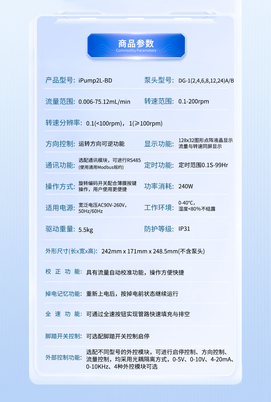 2.大扭矩步進電機驅動,適合多泵頭串聯使用;