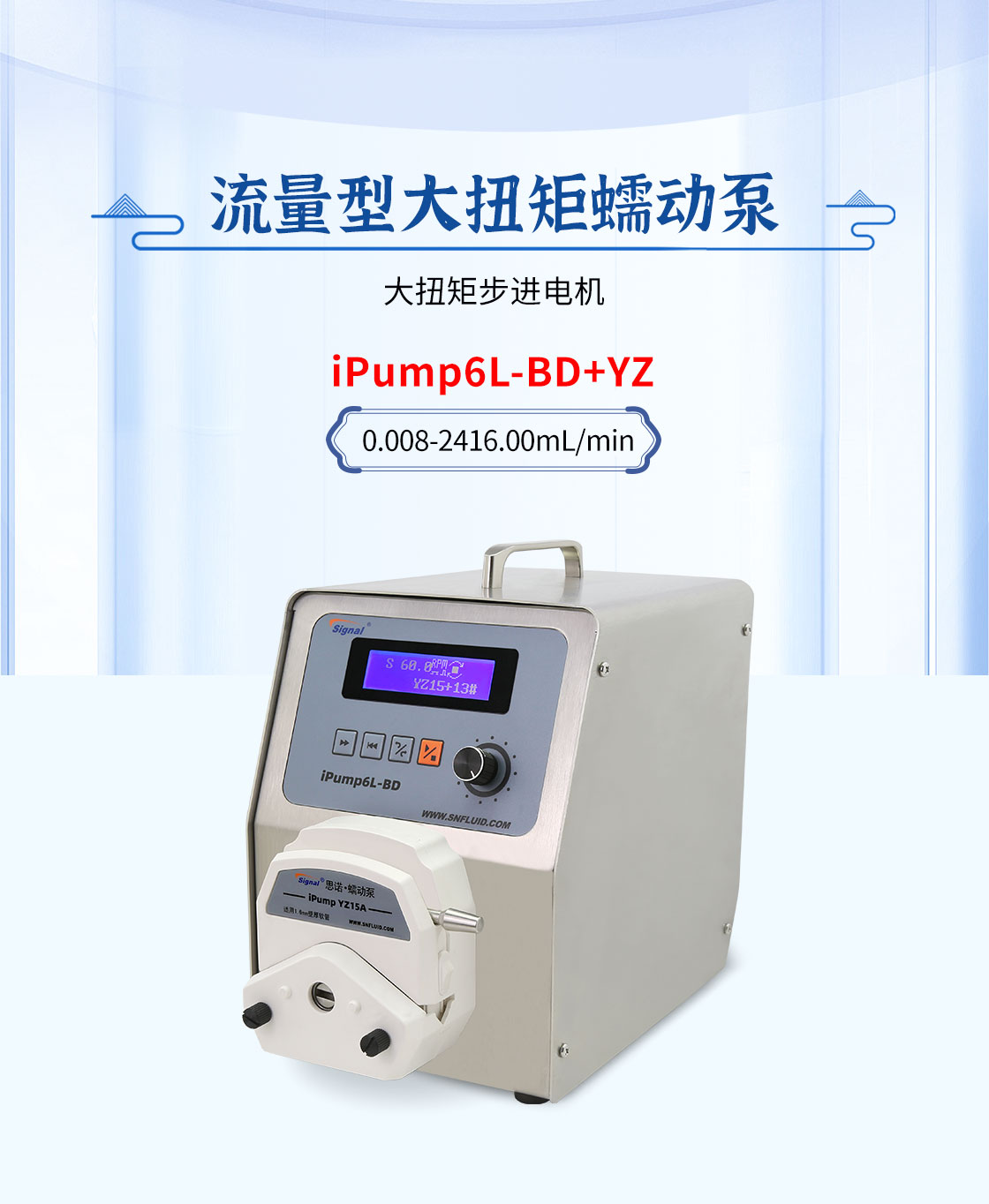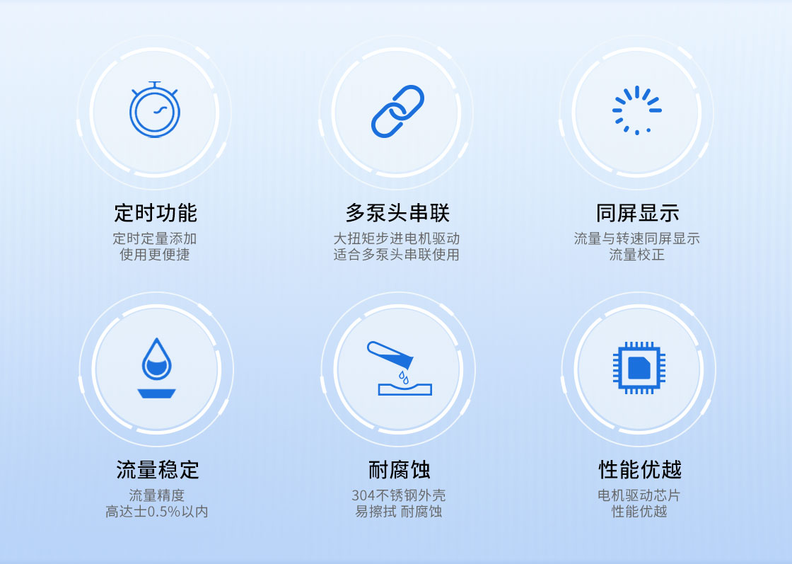 2.大扭矩步進電機驅動,適合多泵頭串聯(lián)使用;