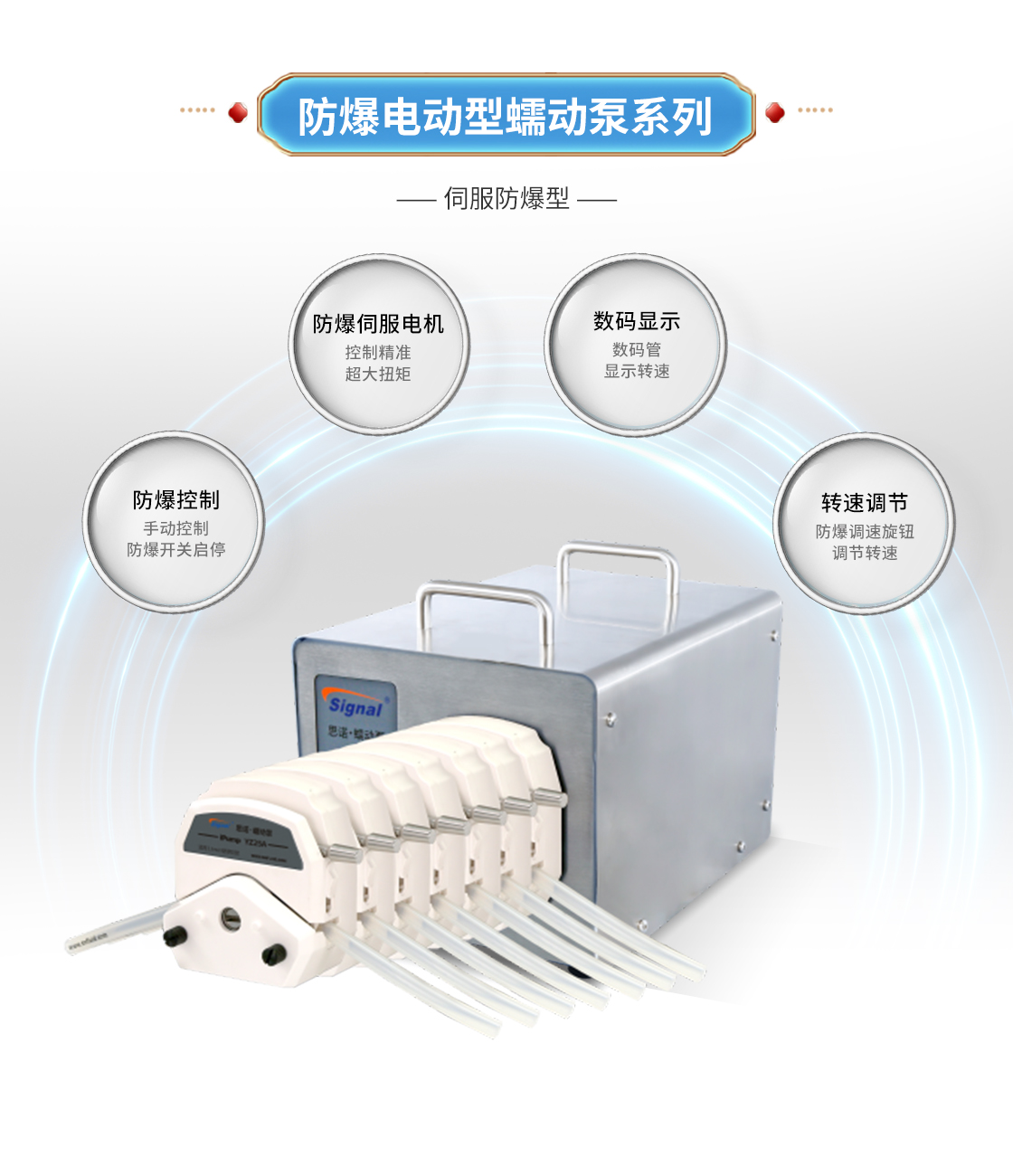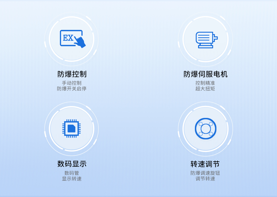參考流量范圍:0.170-1856mL/min 防爆伺服電機,控制精準,防爆開關控制啟停 防爆等級EWxdIIBT Gb,防護等級IP65