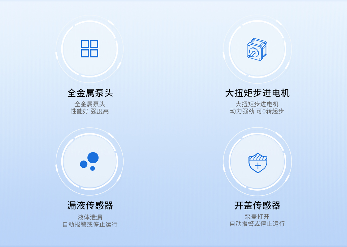 開蓋傳感器:泵蓋打開,自動報警或停止運行;
