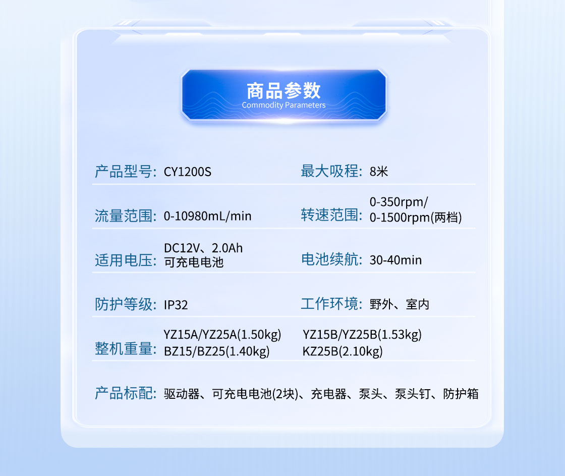 ●充電式電源,標配電池2塊,電壓12V續航時間長;適用于室內外流體采樣,應急傳輸或無電源的場所。