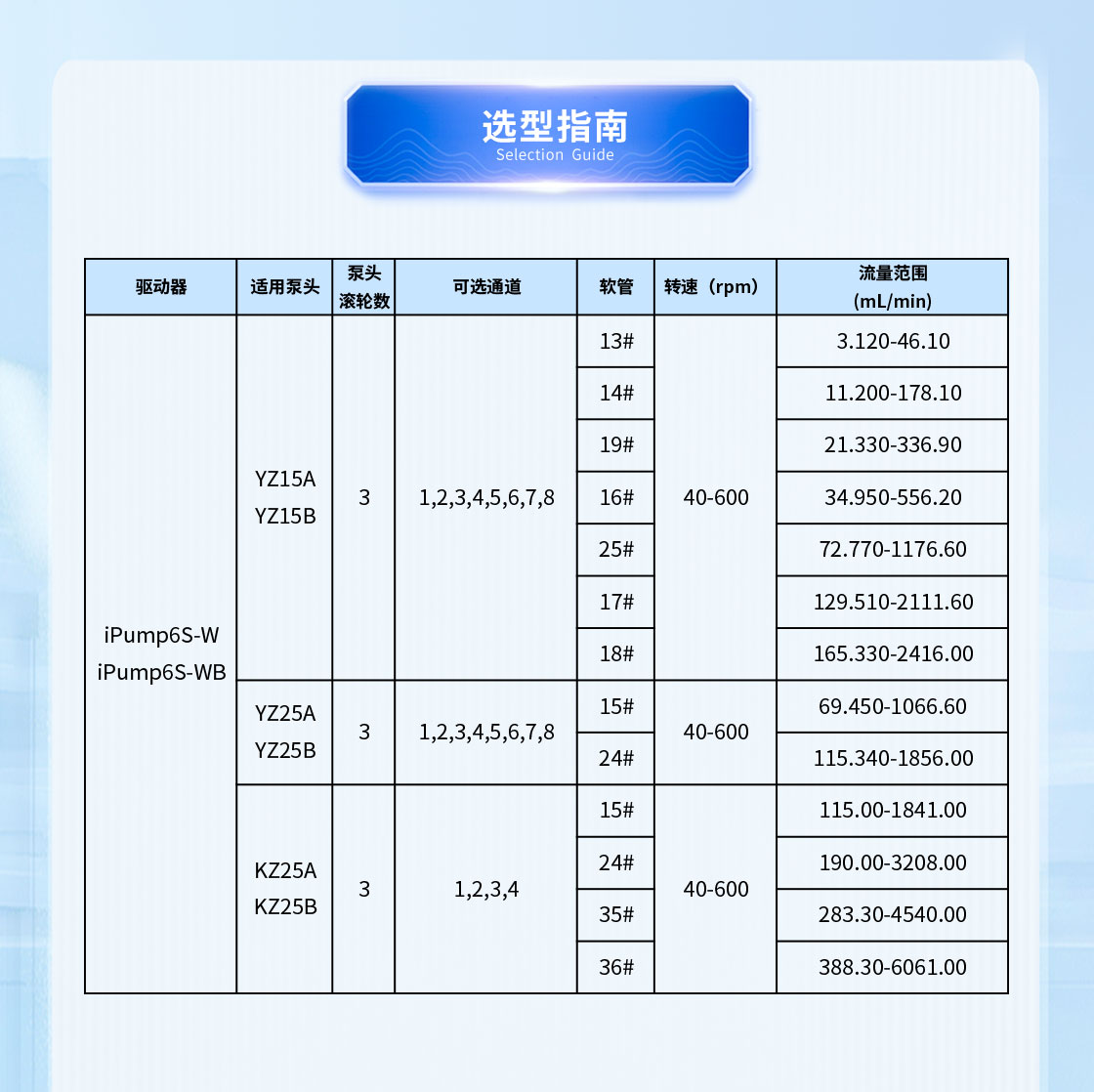 流量范圍:3.12-2416mL/min