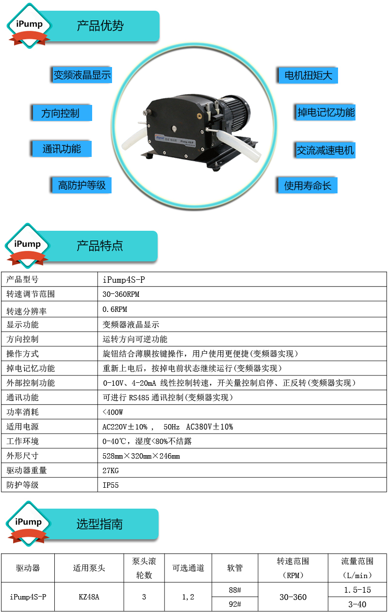 ? ? ?1.流量范圍:1.5-40L/min ? ? ?2.彈性壓管結(jié)構(gòu),軟管壽命長(zhǎng),非常適合大流量液體傳輸 ? ? ?3.免維護(hù)交流減速電機(jī)驅(qū)動(dòng),變頻器調(diào)節(jié)轉(zhuǎn)速 ? ? ?4.全金屬泵頭,高精度,更可靠 ? ? ?5.高防護(hù)等級(jí),更適合惡劣環(huán)境中使用