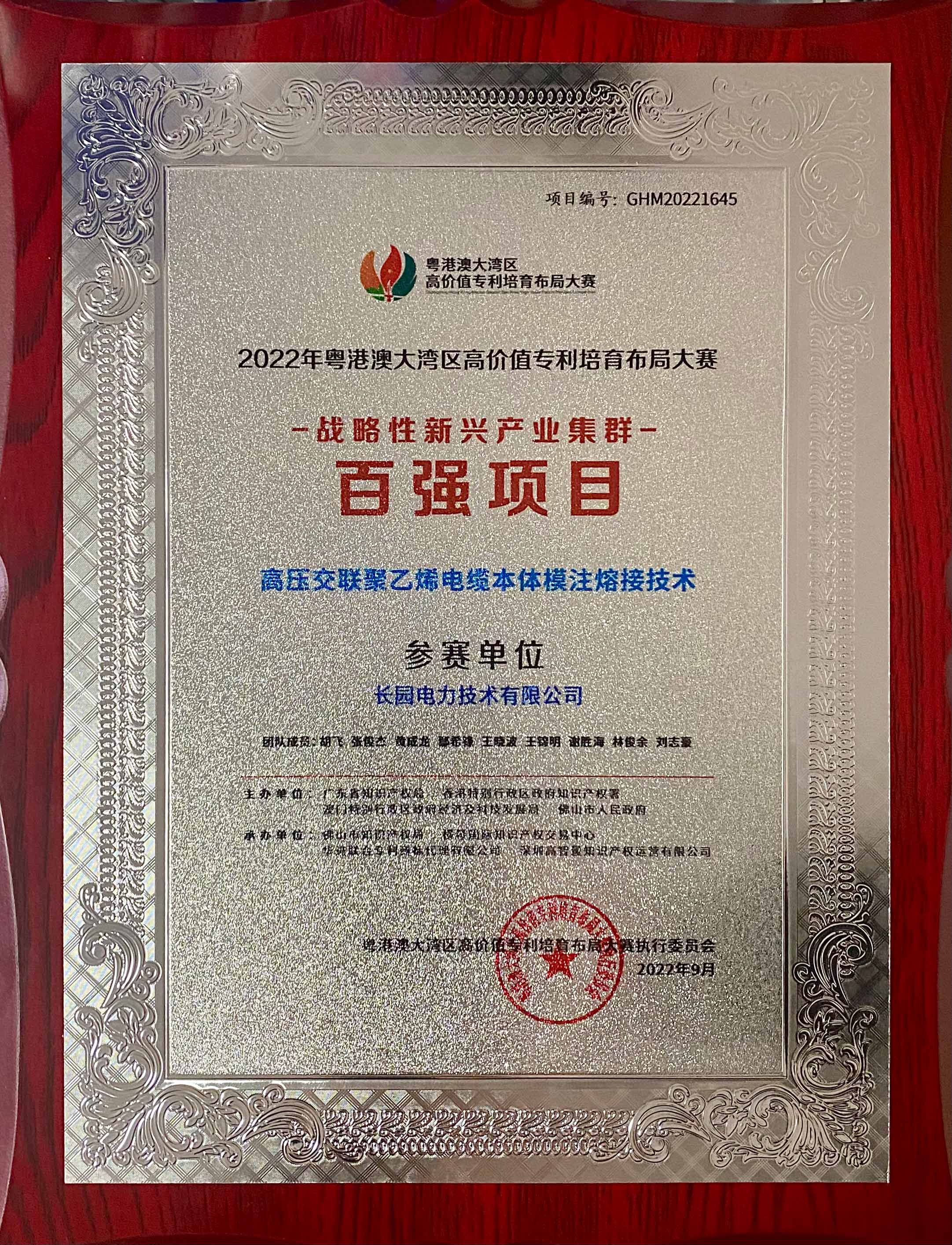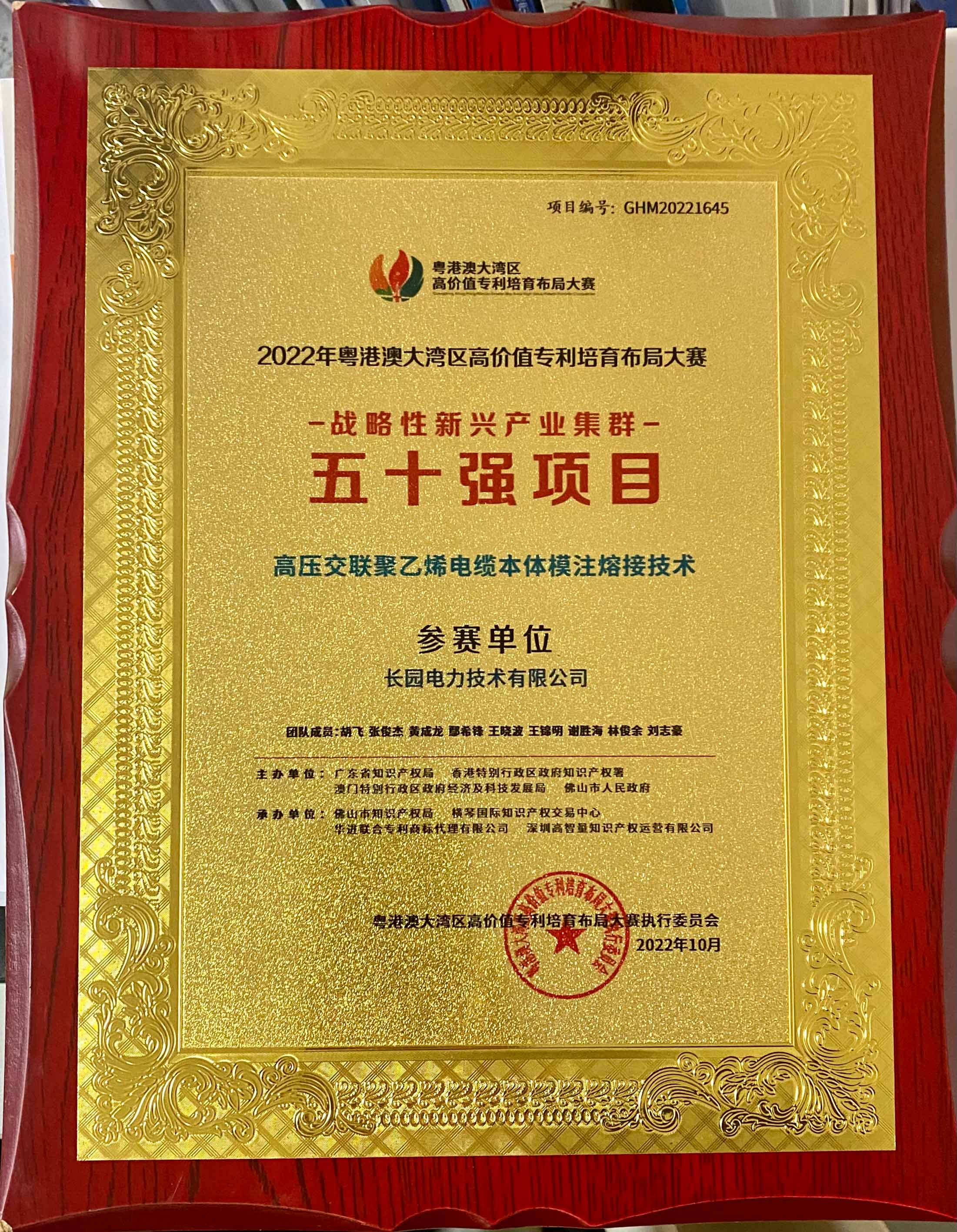 長園電力榮獲“粵港澳大灣區高價值專利培育布局大賽”多項獎項
