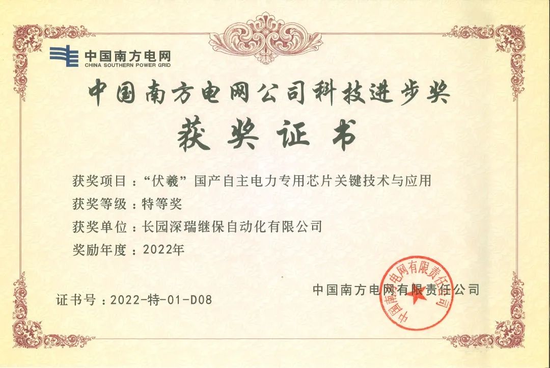 長園深瑞榮獲南方電網公司“科技進步獎特等獎”