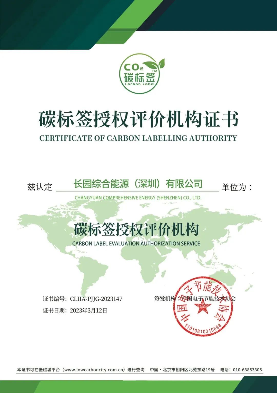 長園綜能獲評“碳標簽授權評價機構”資質
