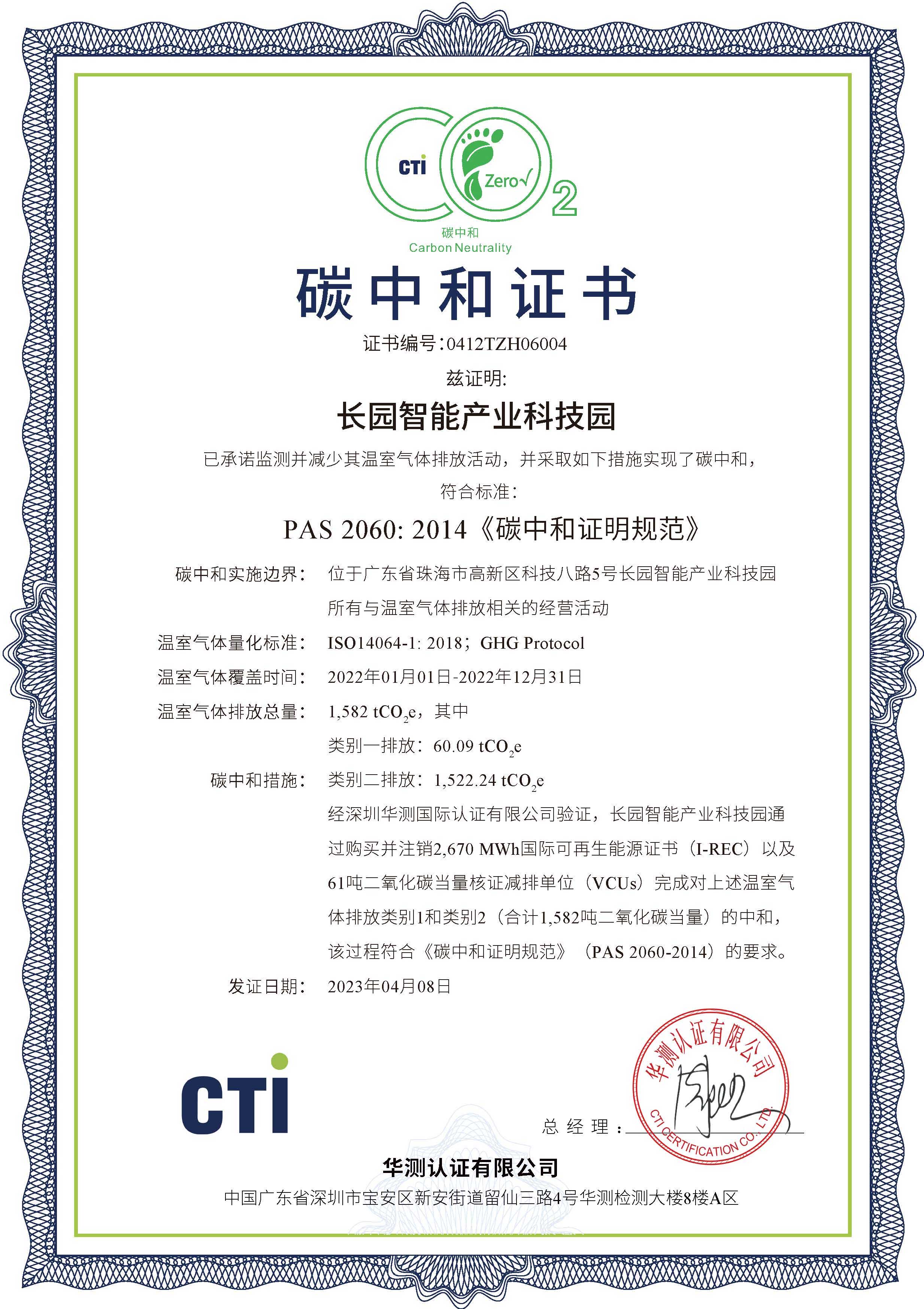長園智能產業科技園實現2022年度運營層面碳中和